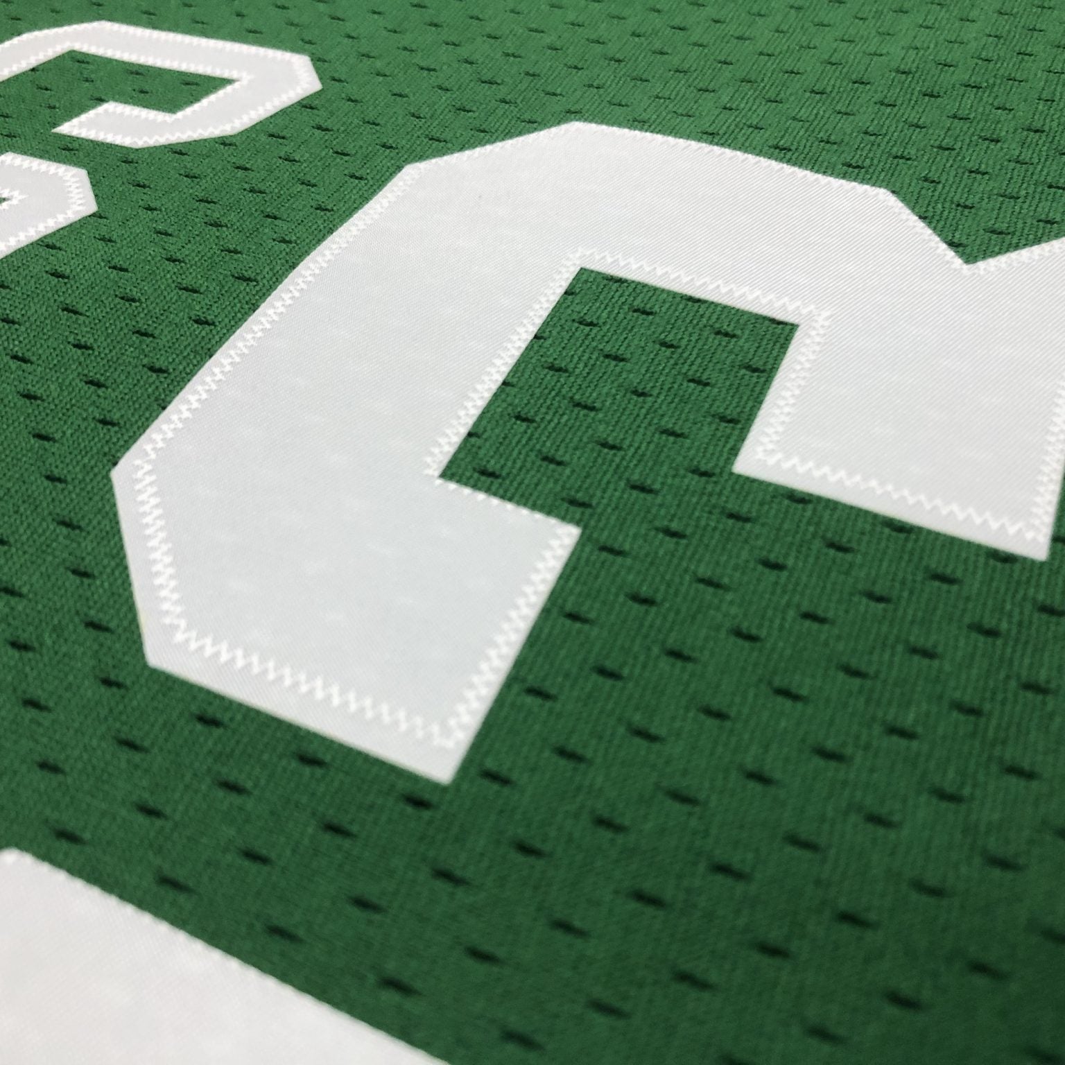 This premium swingman jersey recreates the legendary green and white uniform from that unforgettable campaign, complete with stitched lettering and the iconic #33 that symbolized old-school basketball perfection.